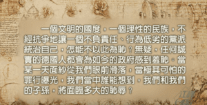 历史留给今世人们许多重要的启示:二战期间,德国22岁的苏菲·萧尔以她宝贵的生命,诠释希望和抗争,我们现在的人也处在重大的历史时刻,静下心来看看当年白玫瑰的传单,感悟自己良心的声音,远离要把你弄到地狱里去的那个魔鬼的召唤。由《“希望之声“.历史上的今天》主持人请人翻译的白玫瑰第一张传单,用中文展示給大家 。这传单是在极权统治下勇气.年轻.知性和神性汇成了一道刺破黑暗的光,盟军用飞机在德国占领区上空播撒白玫瑰的传单,它代表了德意志民族内心深处没有死去的劫后重生的力量,白玫瑰第一张传单: