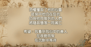 在兄妹两人的最后时刻,苏菲对父母说,“我们所做的,必将掀起浪潮。”我们的行为也可以有同样的果效。一个人发声,另一个人加入,涟漪聚成波浪,波浪掀起洪水。”