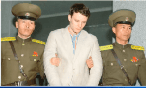 奥托撕下海报的做法确实不对,但罪不至死啊,他先是被朝鲜的法庭判处15年的劳教,然后在监狱中“脑组织大面积受损”,变成植物人,直至身亡。