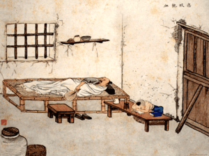 其母年老多病,每次吃得少而慢,孝子就暗地里伤心。看到熟人,必用手比划,好像在说我母亲吃得很少,紧皱眉头一副忧伤样子。母亲如果吃得多而香甜,孝子会对着母亲呀呀呀,像在唱歌,又张开手臂跳舞.模仿舞台上演戏人的动作,让母亲欢乐高兴。见到熟人,又指指画画,好像在说我母亲吃得很多,一副快活的样子。吴孝子已经五十岁了,天天如此,从未变更过态度。每逢严冬,总是先用自己的身体温暖母亲的被窝,被窝暖和后,又穿好衣服起床,替母亲脱下衣服让她睡下。自己则蜷伏在床脚边,听到母亲沉睡的打鼾声,才悄悄去自己的草床睡觉。