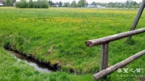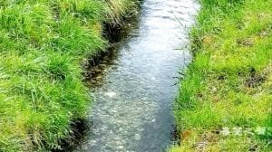一泓清澈见底的溪流弹唱着欢快的乐曲穿过绿野。