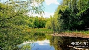 翻过这片丘陵,一个池塘呈现在眼前。