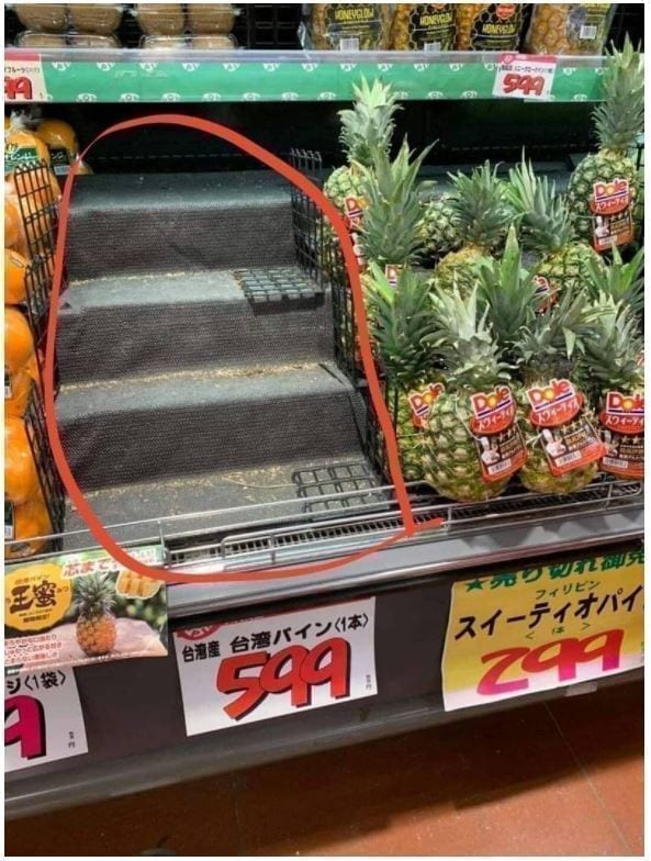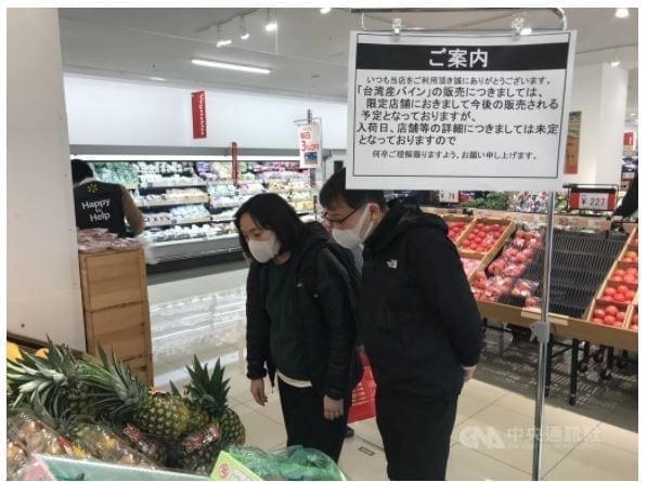 中共突然暫停進口臺灣鳳梨,經日媒廣爲報導後,“臺灣鳳梨”在日本成了熱搜話題,網路上很多日本民衆到處問哪裏有貨,有的直接打電話到連鎖超市詢問,這股“臺灣鳳梨熱”讓日本超市應接不暇。