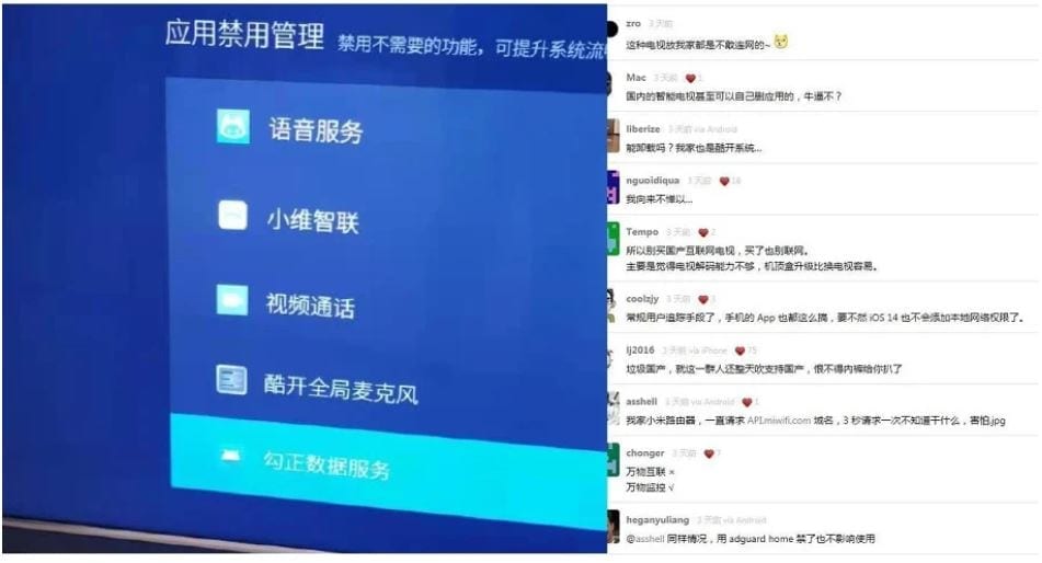 这种电视我家都是不敢连网的。”