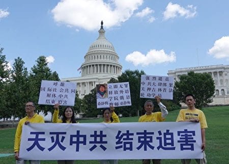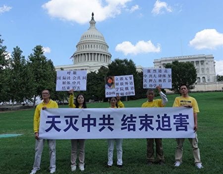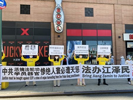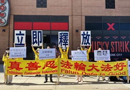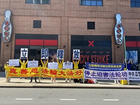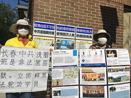 8月18日上午,部分原籍大陆长春的法轮功学员聚集纽约中领馆前和平抗议,要求立即无条件释放近期被中共当局大肆绑架的法轮功学员,以及中共政法委强行拆除电视卫星接收器阻碍民众了解真相。